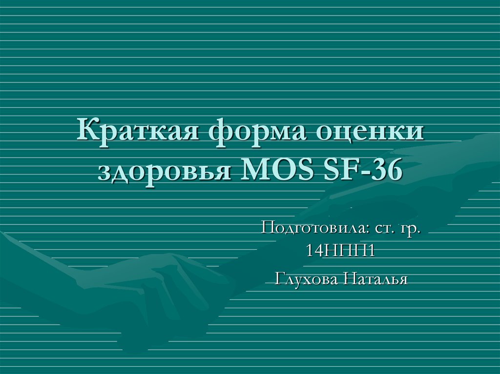 • Краткая офрма оценки здоровья MOS SF-36 является однимиз самых распространённых методов измерения качества