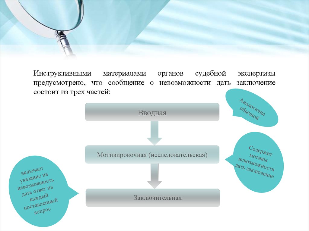 Если поставленные вопросы выходят за пределы специальныхзнаний эксперта, объекты исследований и материалы дела
