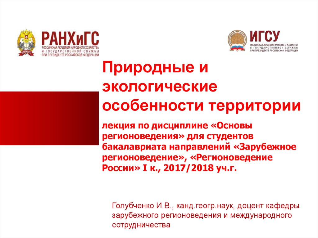 Голубченко И.В., канд.геогр.наук, доцент кафедры