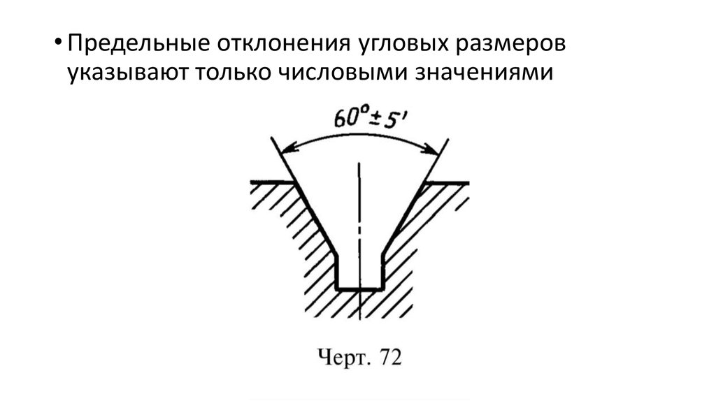 • Предельные отклонения угловых размеровуказывают только числовыми значениями