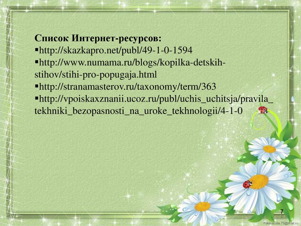 Список Интернет-ресурсов:http://skazkapro.net/publ/49-1-0-1594
