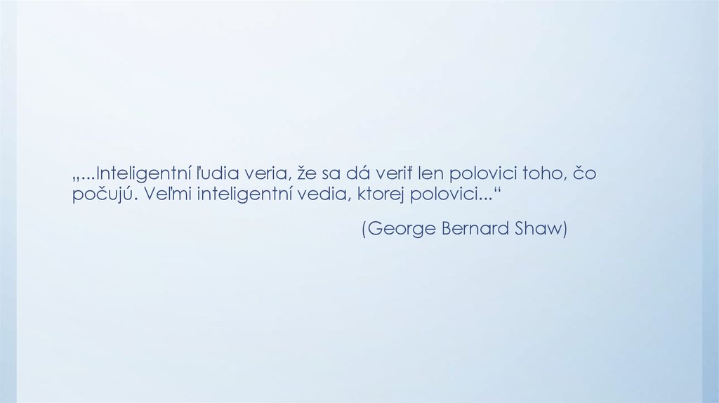 „...Inteligentní ľudia veria, že sa dá veriť len polovici toho, čopočujú. Veľmi inteligentní vedia, ktorej polovici...“