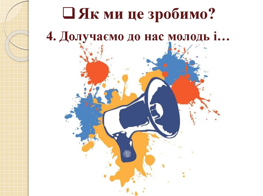 Як ми це зробимо?4. Долучаємо до нас молодь і…