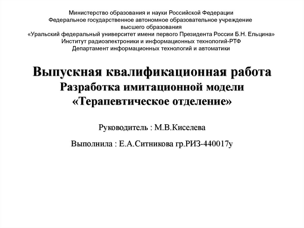«Уральский федеральный университет имени первого Президента России Б.Н. Ельцина»