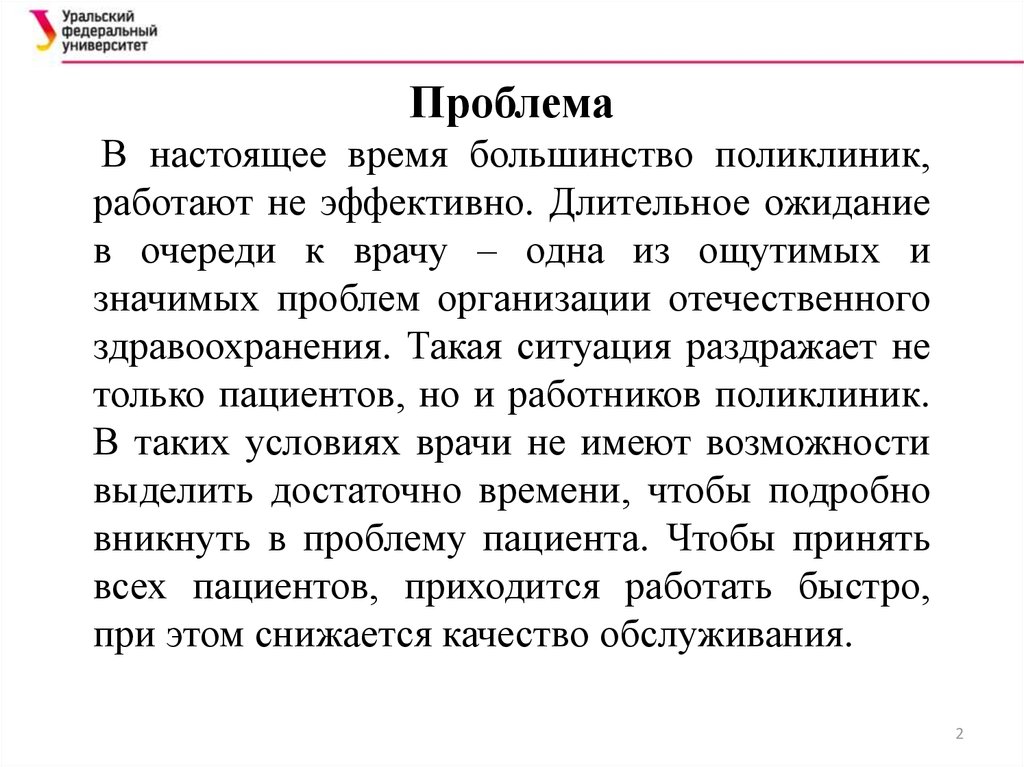 ПроблемаВ настоящее время большинство поликлиник,