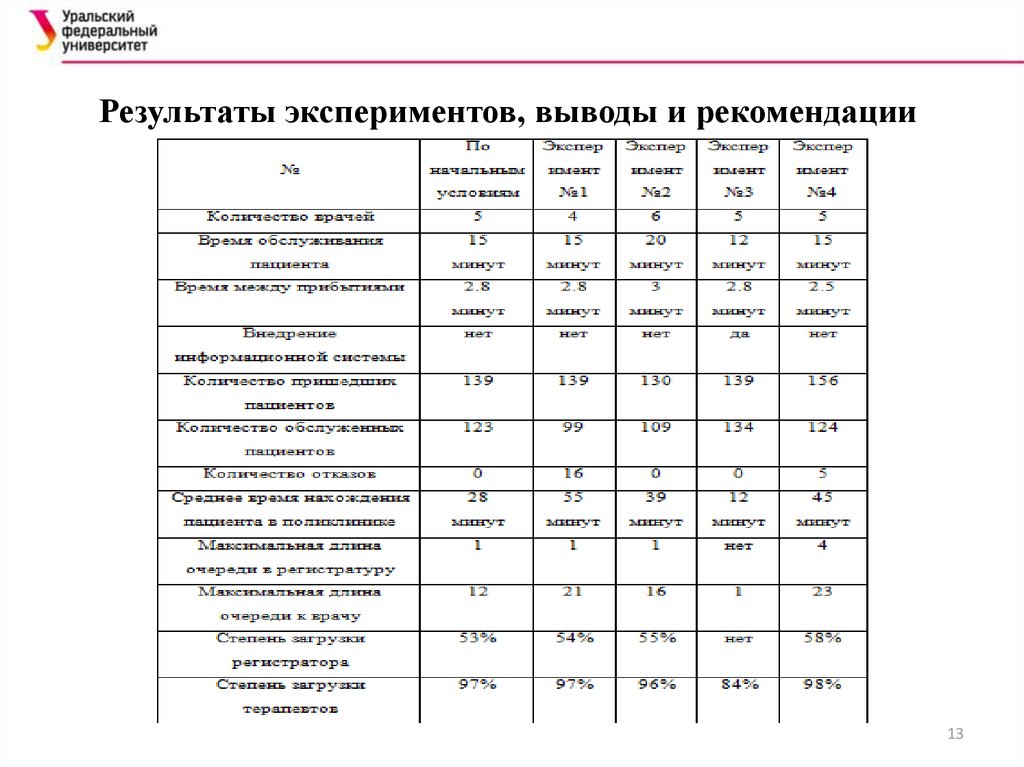 Результаты экспериментов, выводы и рекомендации13