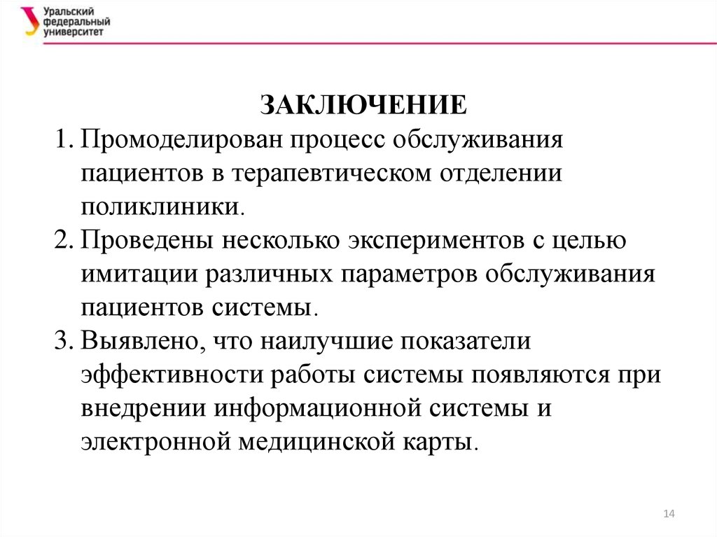 ЗАКЛЮЧЕНИЕ1. Промоделирован процесс обслуживания