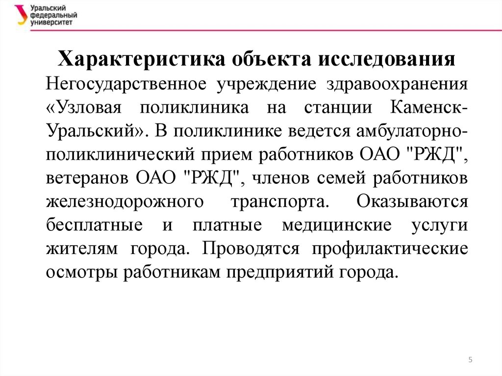 Характеристика объекта исследованияНегосударственное учреждение здравоохранения