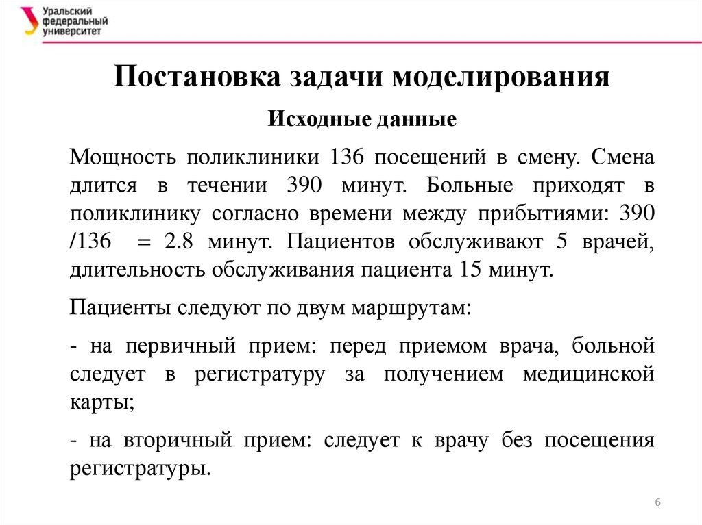 Постановка задачи моделированияИсходные данные