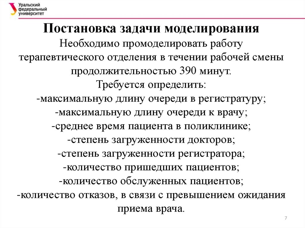 пациентов в узловой поликлинике на стации КаменскУральский на основе имитационной модели.