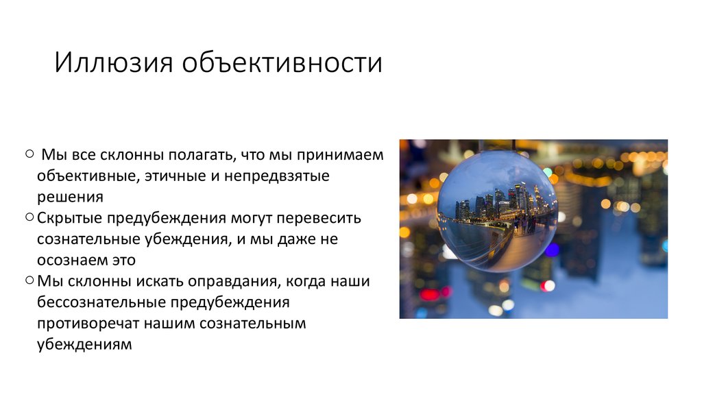 Иллюзия объективностиo Мы все склонны полагать, что мы принимаем