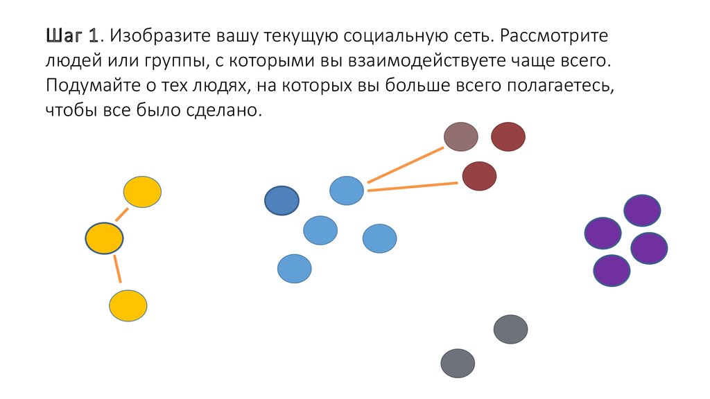 Шаг 1. Изобразите вашу текущую социальную сеть. Рассмотрителюдей или группы, с которыми вы взаимодействуете чаще всего.