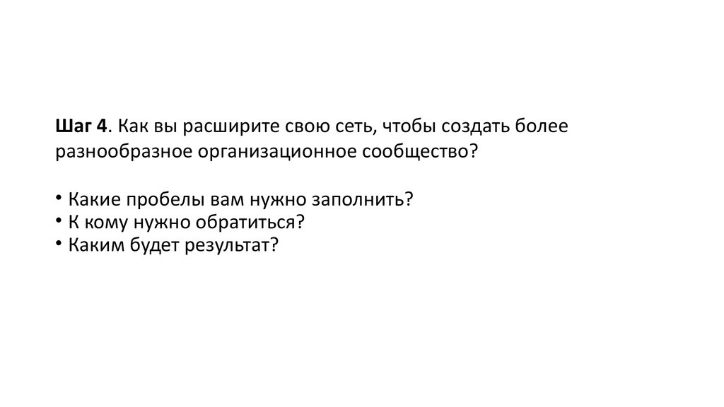 Шаг 4. Как вы расширите свою сеть, чтобы создать болееразнообразное организационное сообщество?