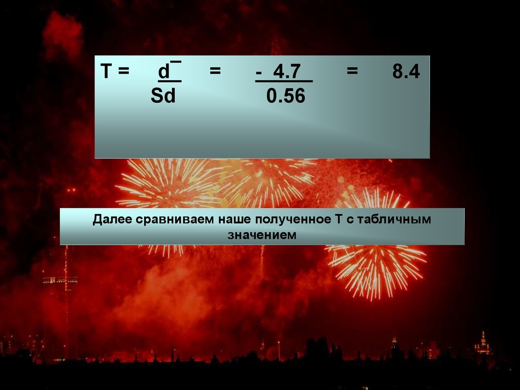 Далее сравниваем наше полученное Т с табличным