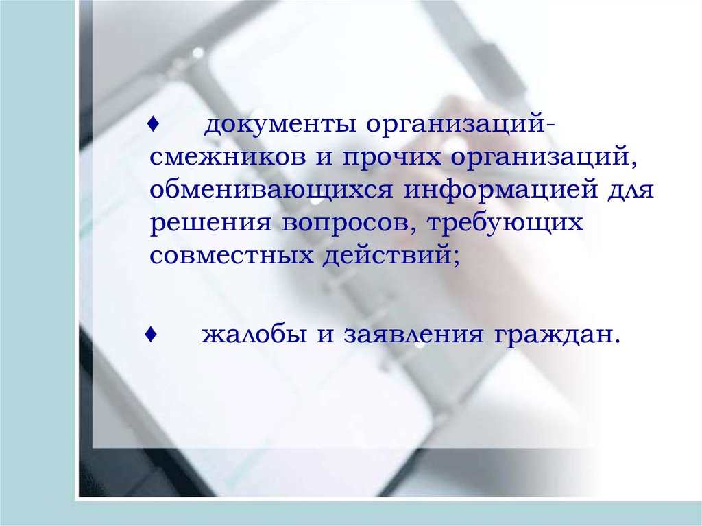 ♦документы организацийсмежников и прочих организаций,
