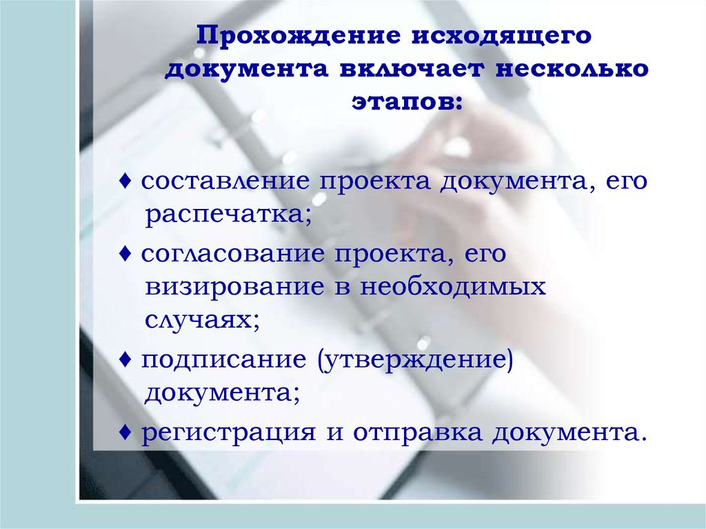 Прохождение исходящегодокумента включает несколько