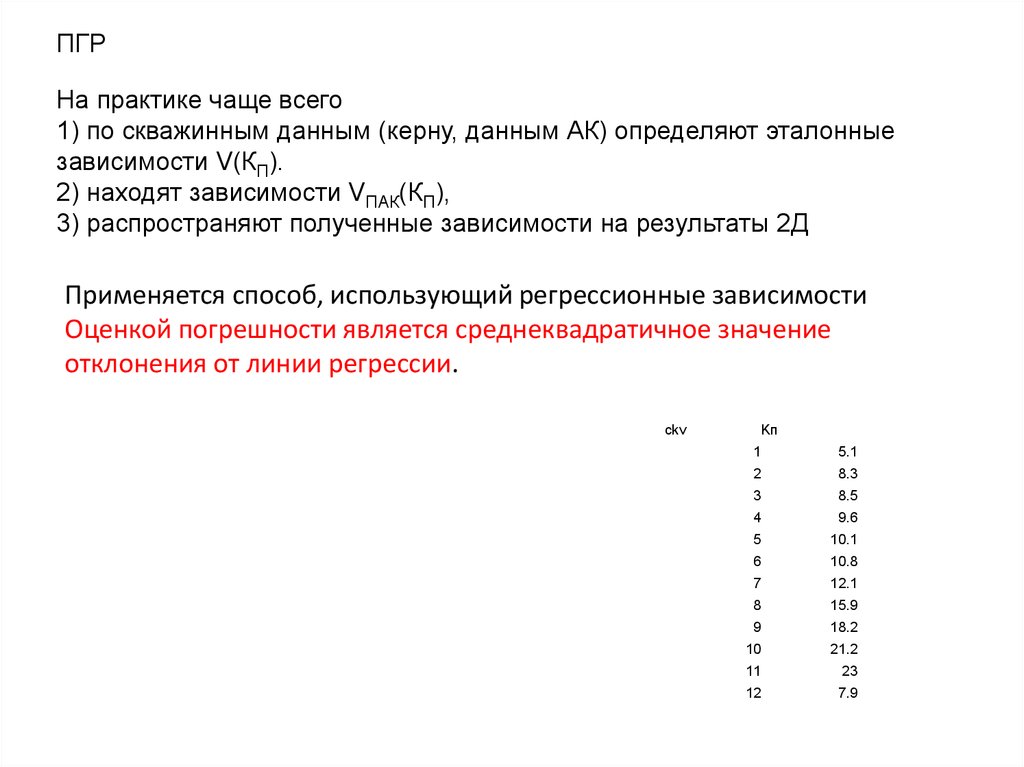 1) по скважинным данным (керну, данным АК) определяют эталонные