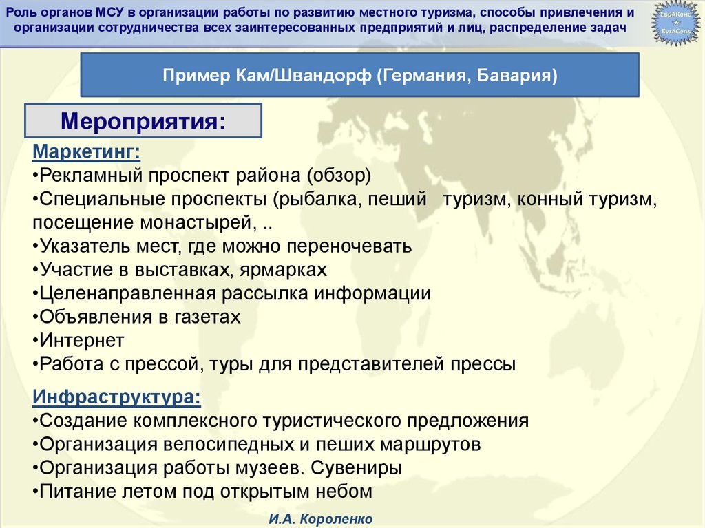 Роль органов МСУ в организации работы по развитию местного туризма, способы привлечения иорганизации сотрудничества всех заинтересованных предприятий и лиц, распределение задач