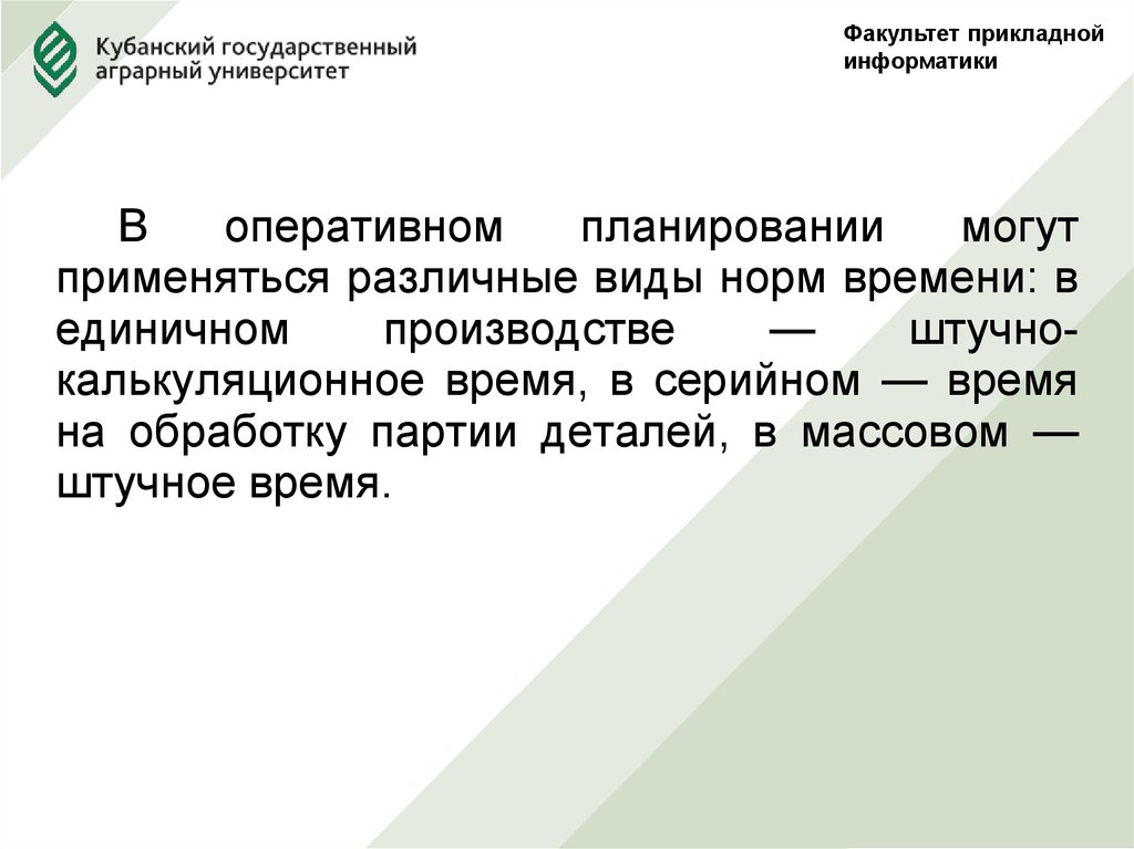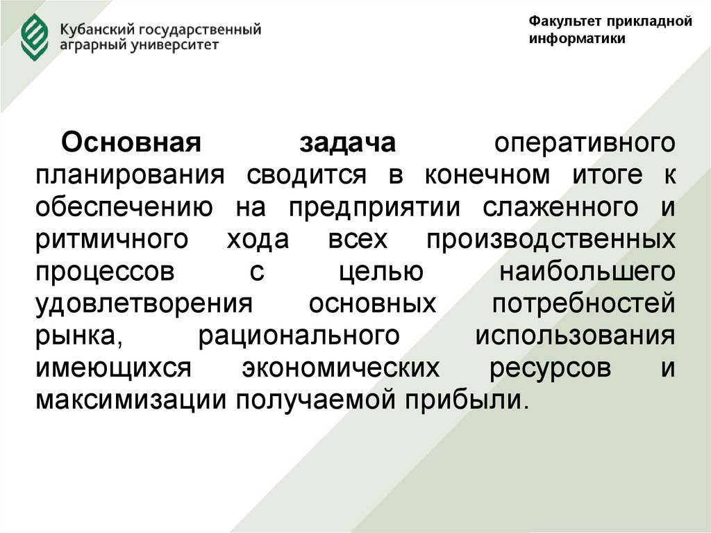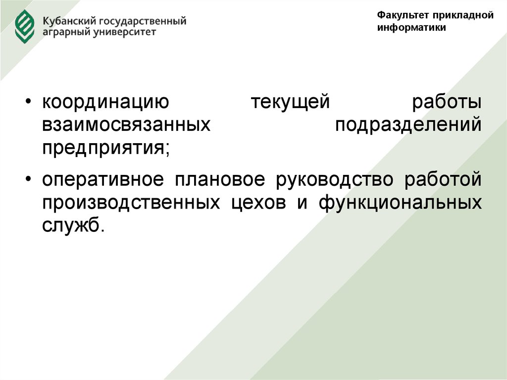 • оперативное плановое руководство работой