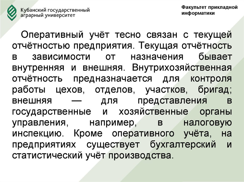 Оперативный учёт тесно связан с текущей