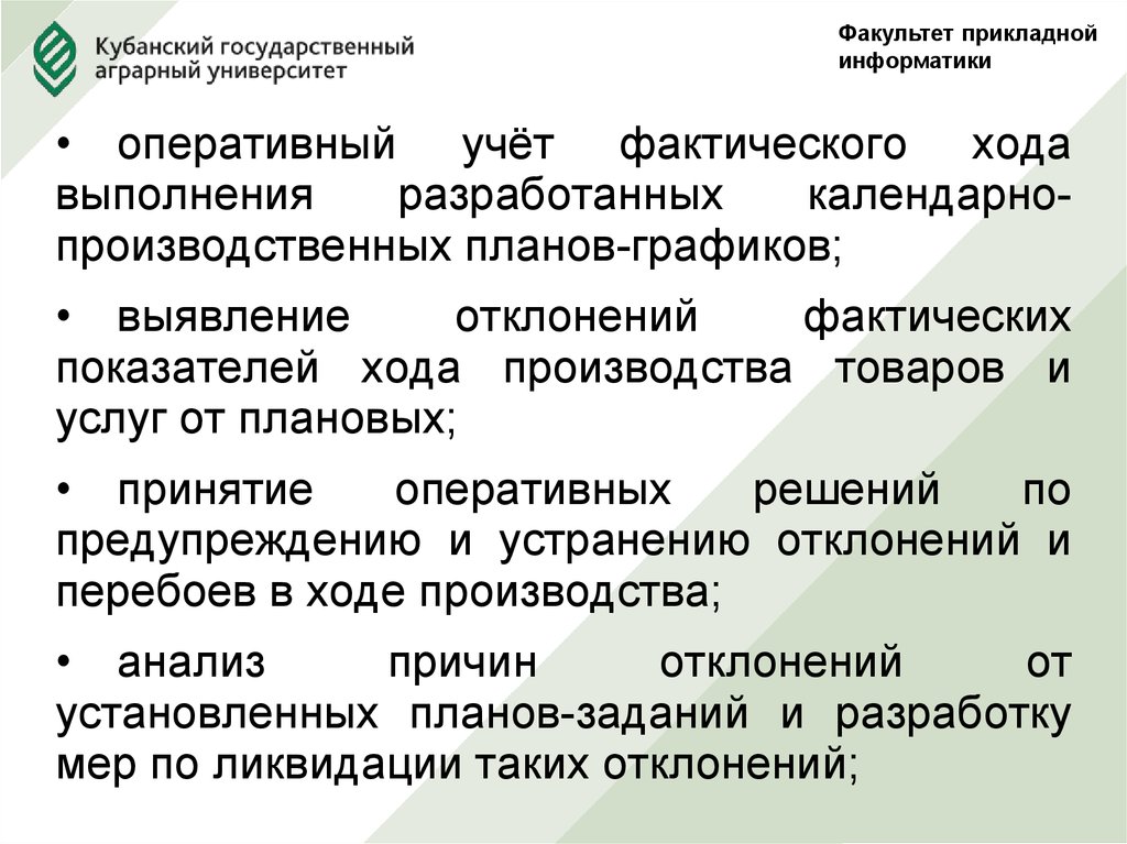 • оперативный учёт фактического хода