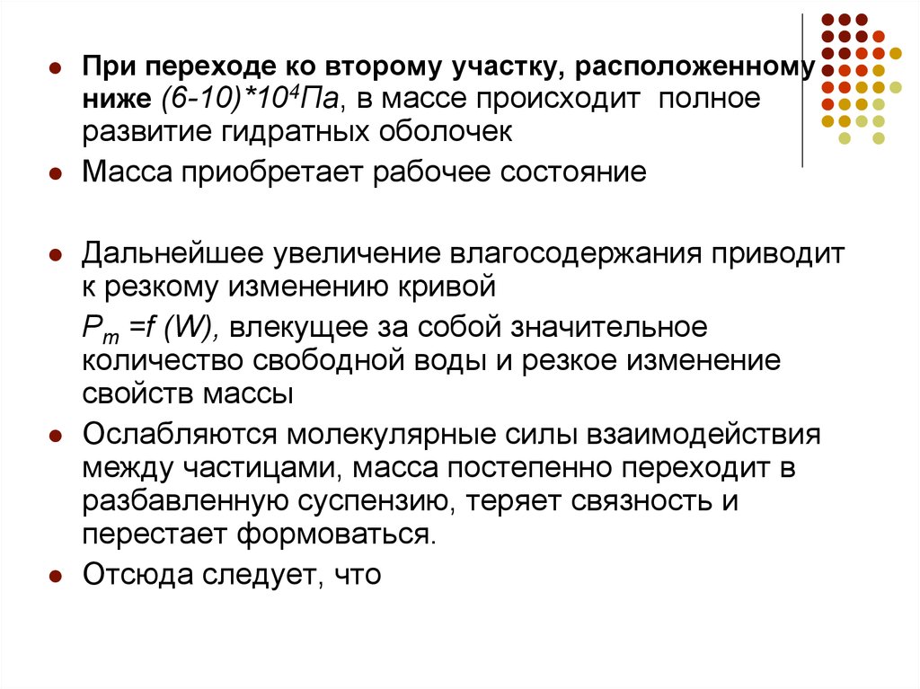 При переходе ко второму участку, расположенномуниже (6-10)*104Па, в массе происходит полное