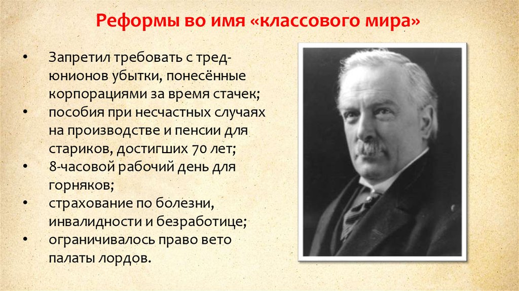 Реформы во имя «классового мира»Дэвид Ллойд Джордж