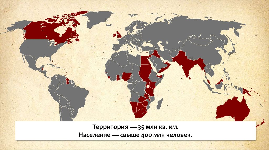 Территория — 35 млн кв. км.Население — свыше 400 млн человек.