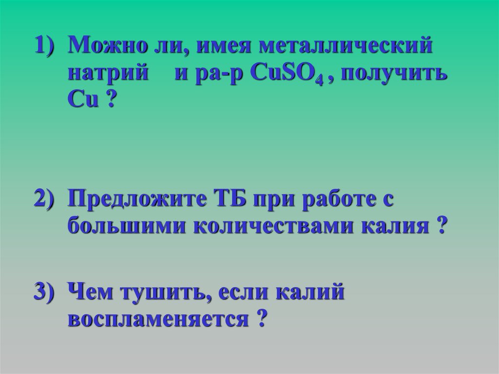 1) Можно ли, имея металлическийнатрий и ра-р СuSO4 , получить
