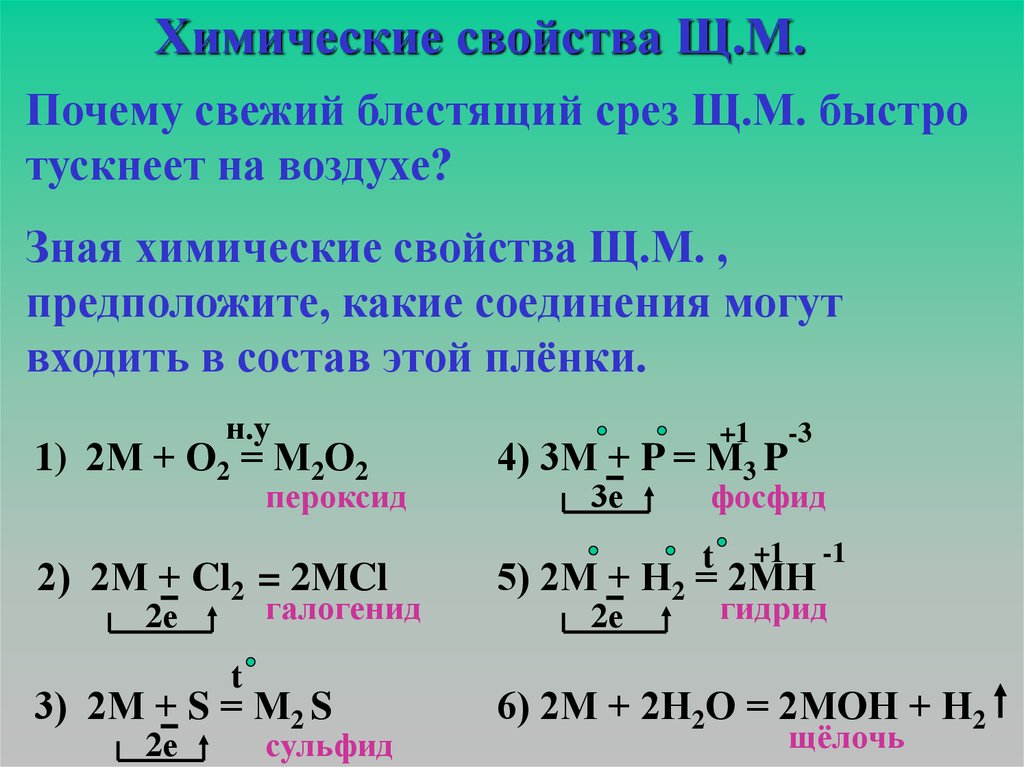 Химические свойства Щ.М.Почему свежий блестящий срез Щ.М. быстро