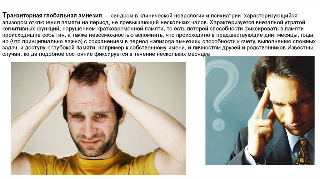 дня, больные сильно переживают! ТГА обычно поражает мужчин в возрасте 50-80 лет;