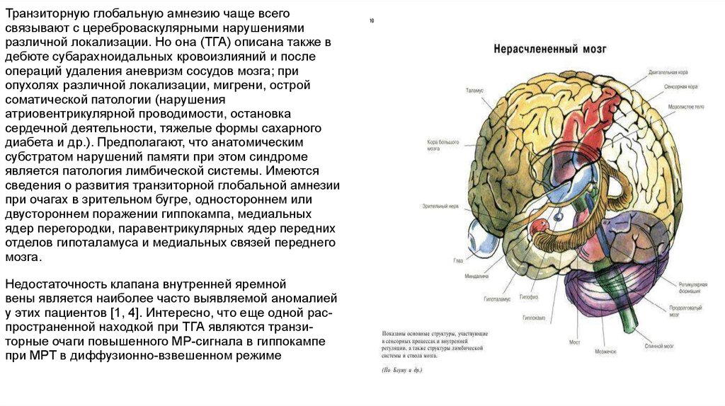 у этих пациентов [1, 4]. Интересно, что еще одной распространенной находкой при ТГА являются транзиторные очаги повышенного МР-сигнала в гиппокампе