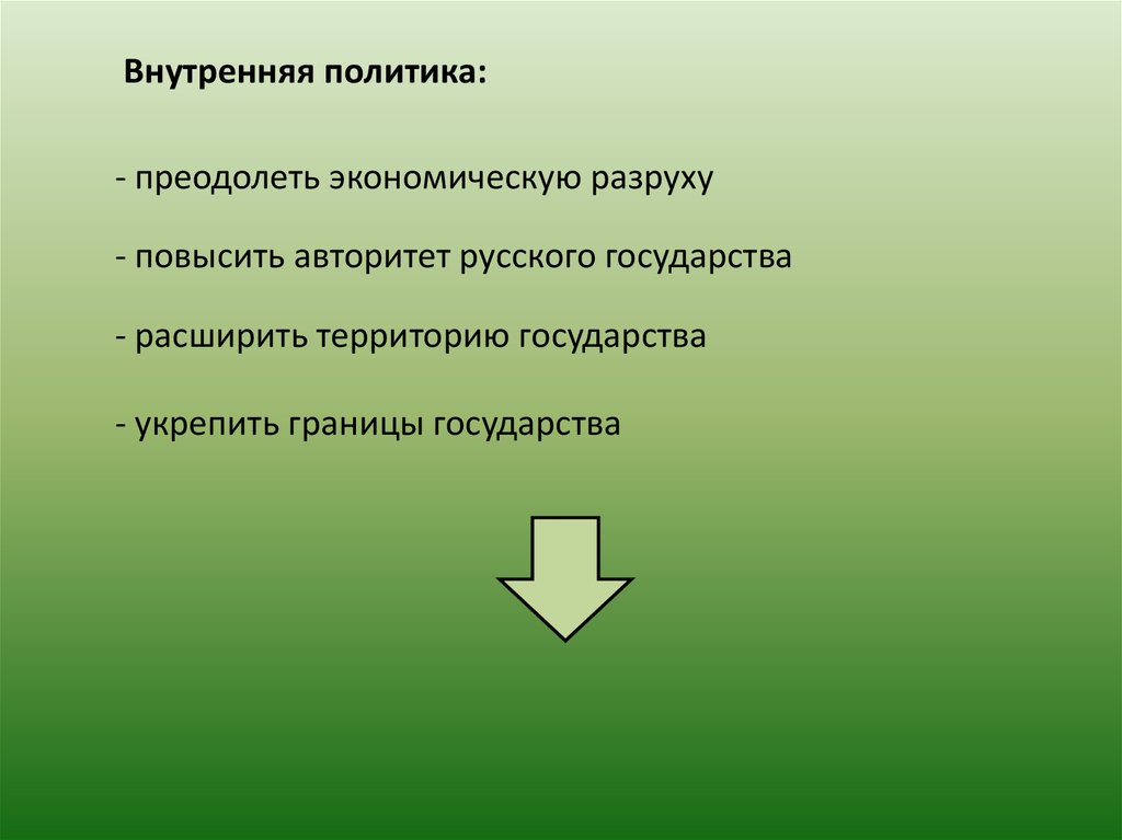 Внутренняя политика:- преодолеть экономическую разруху