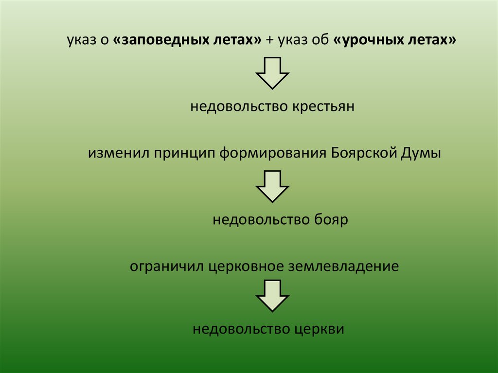 указ о «заповедных летах» + указ об «урочных летах»недовольство крестьян