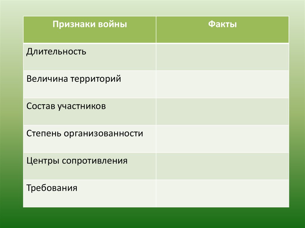 Признаки войныДлительность