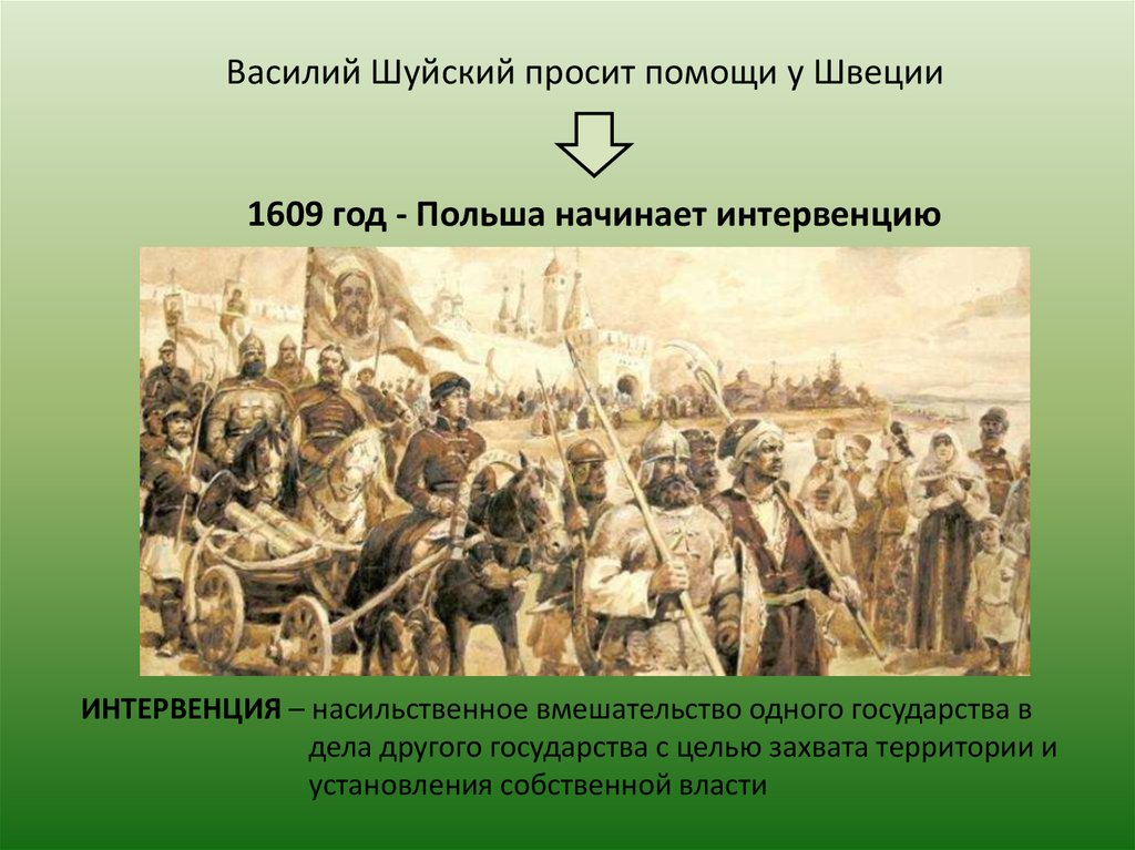 Василий Шуйский просит помощи у Швеции1609 год - Польша начинает интервенцию