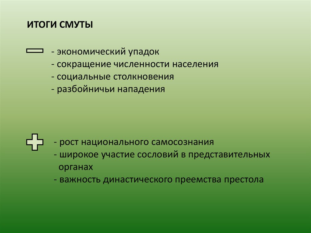 ИТОГИ СМУТЫ- экономический упадок