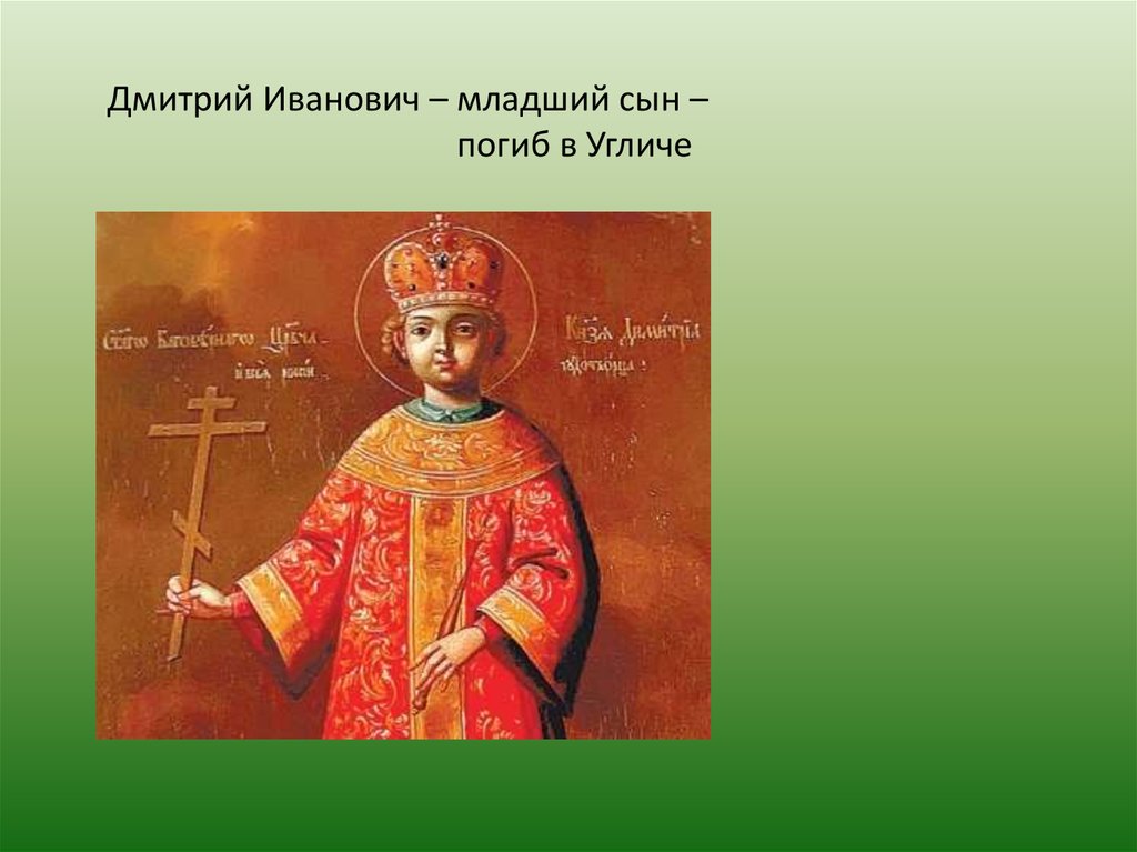 Дмитрий Иванович – младший сын –погиб в Угличе