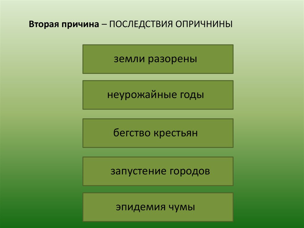 Вторая причина – ПОСЛЕДСТВИЯ ОПРИЧНИНЫземли разорены