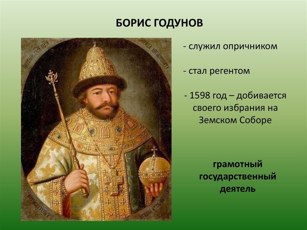 БОРИС ГОДУНОВ- служил опричником