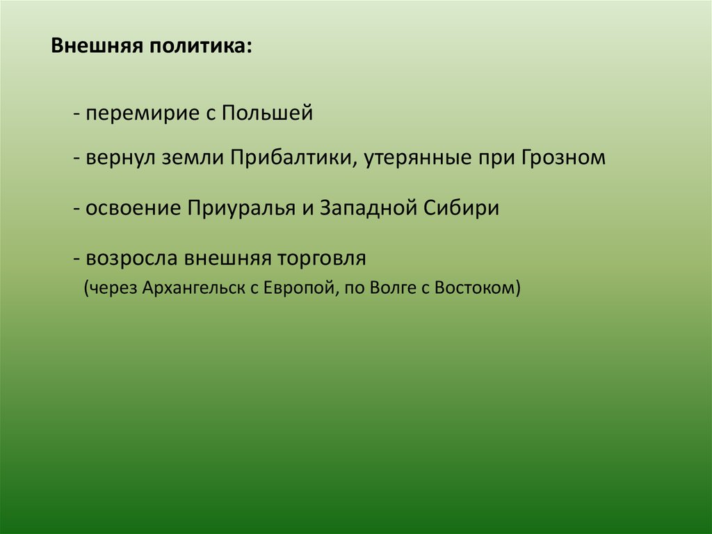 - вернул земли Прибалтики, утерянные при Грозном
