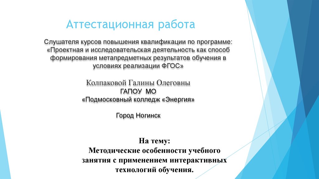 Аттестационная работа. Методические особенности учебного занятия с применением интерактивных технологий обучения