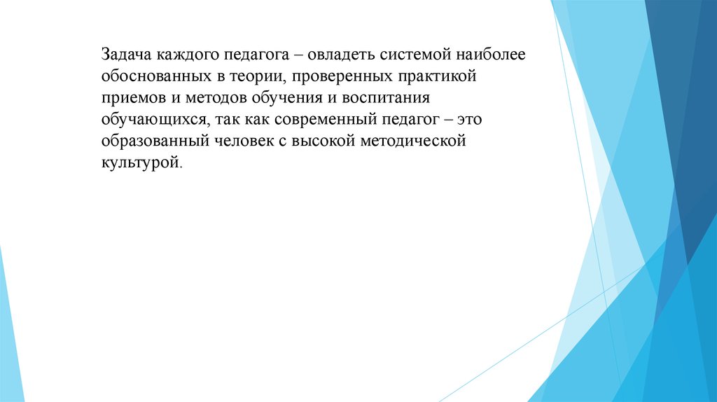 Задача каждого педагога – овладеть системой наиболееобоснованных в теории, проверенных практикой
