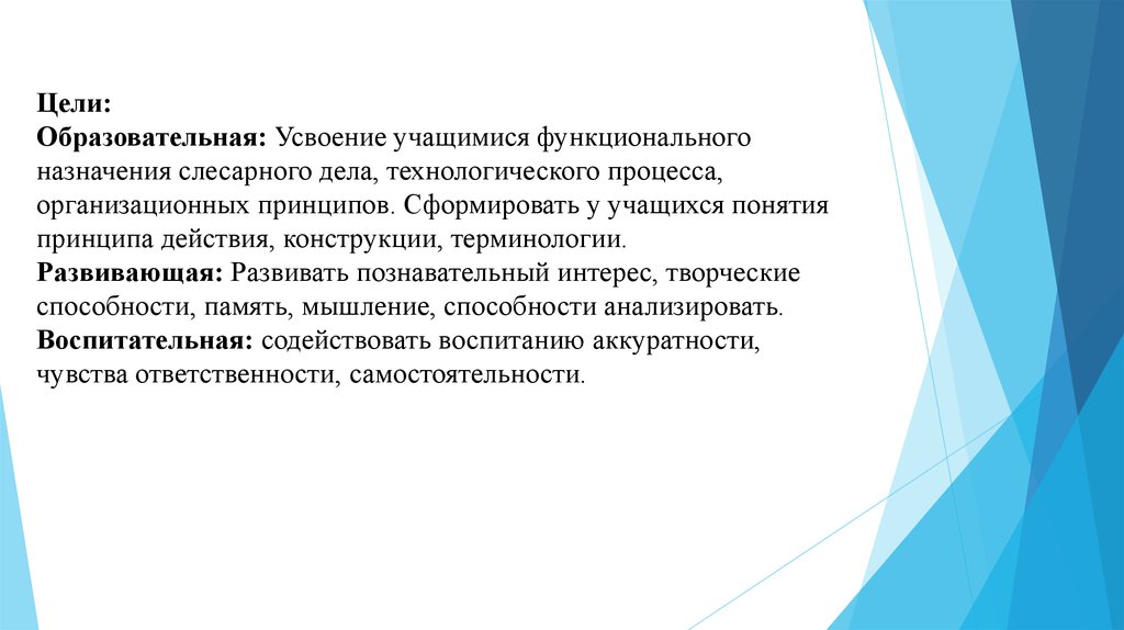 назначения слесарного дела, технологического процесса,