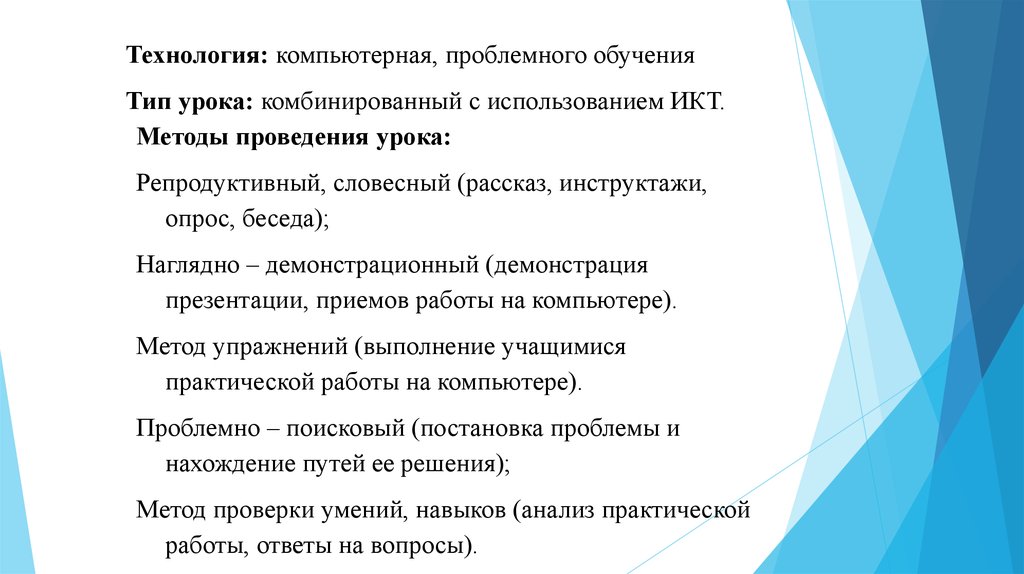 Методы обучение: комбинированный с использованием