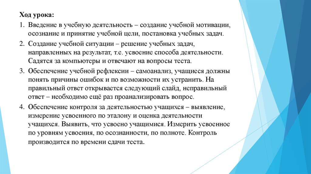 4. Обеспечение контроля за деятельностью учащихся – выявление,