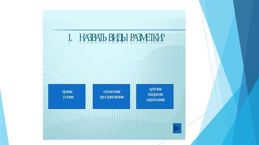 1. НАЗВАТЬ ВИДЫ РАЗМЕТКИ?прямая