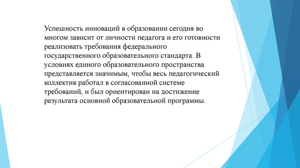 Успешность инноваций в образовании сегодня вомногом зависит от личности педагога и его готовности