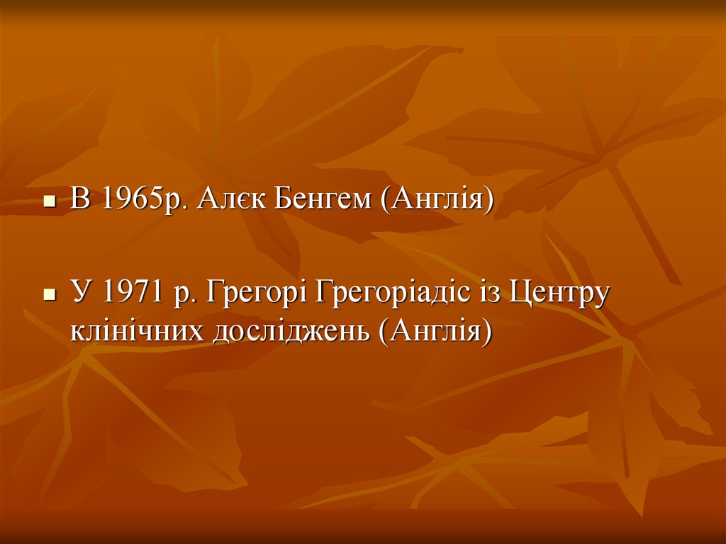 В 1965р. Алєк Бенгем (Англія)У 1971 р. Грегорі Грегоріадіс із Центру