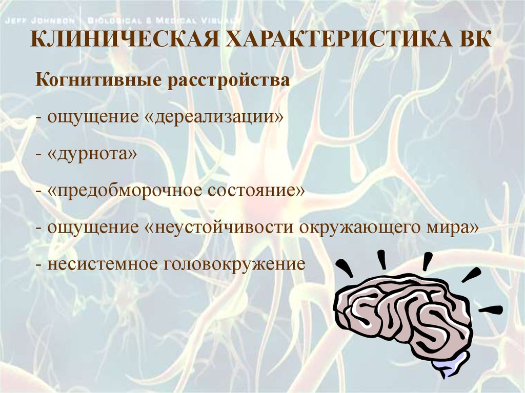 КЛИНИЧЕСКАЯ ХАРАКТЕРИСТИКА ВККогнитивные расстройства